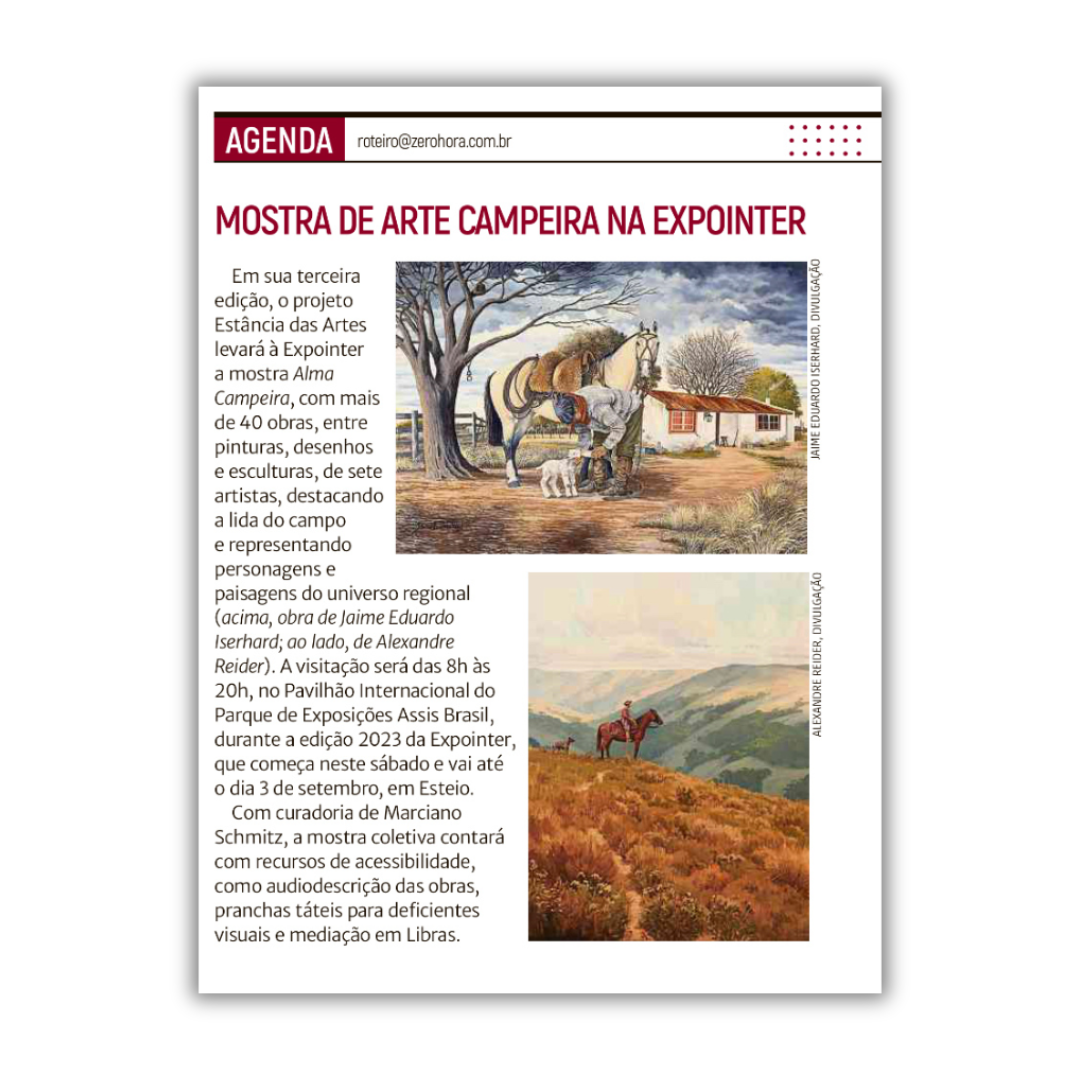 Destacar uma iniciativa cultural em um evento de agronegócio. Esse foi o desafio do time de PR da Éfe Reputação ao assumir, em 2023, a assessoria de imprensa e a execução da ação de relacionamento do projeto Estância da Arte, uma iniciativa da produtora Simples Assim que celebra a cultura do campo gaúcho por obras de artistas locais na Expointer. Desafio esse que se repete em 2024.
